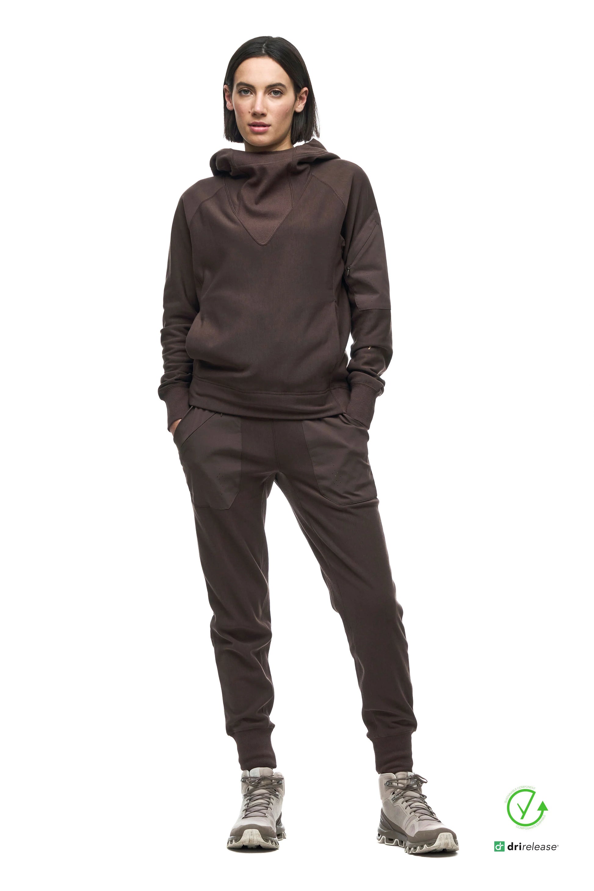 • Fixed hood to protect you from inclement weather • Kangaroo pocket to keep your hands warm • Woven stretch patched pocket with zipper closure for carrying your phone • Rib knit at cuffs, bottoms hem and collar yoke • Laser cut detail • Reflective logo for added protection • Eco-friendly drirelease®lyocell technology for continuous performance • Two-way stretch fabric for maximum comfort and movement • Length (S) Front: 24” / Back: 25.5”
