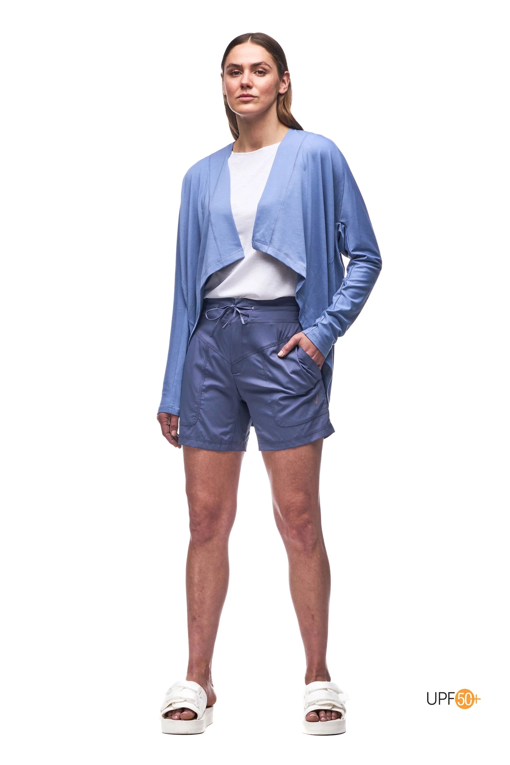 Versatile and reversible wrap cardigan that can be worn in two different lengths. Relaxed cardigan wrap in jersey drirelease®. Loose fit that feels roomy. Wear this reversible cardigan in two different lengths and layer it over your dresses or tops every summer evening. Drirelease® technology : permanent performance with eco-friendly component. Superior comfort : soft and natural feel. Premium quality : resist pilling, wrinkling, static cling. Four-way Stretch, Fast Drying, moisture wicking.