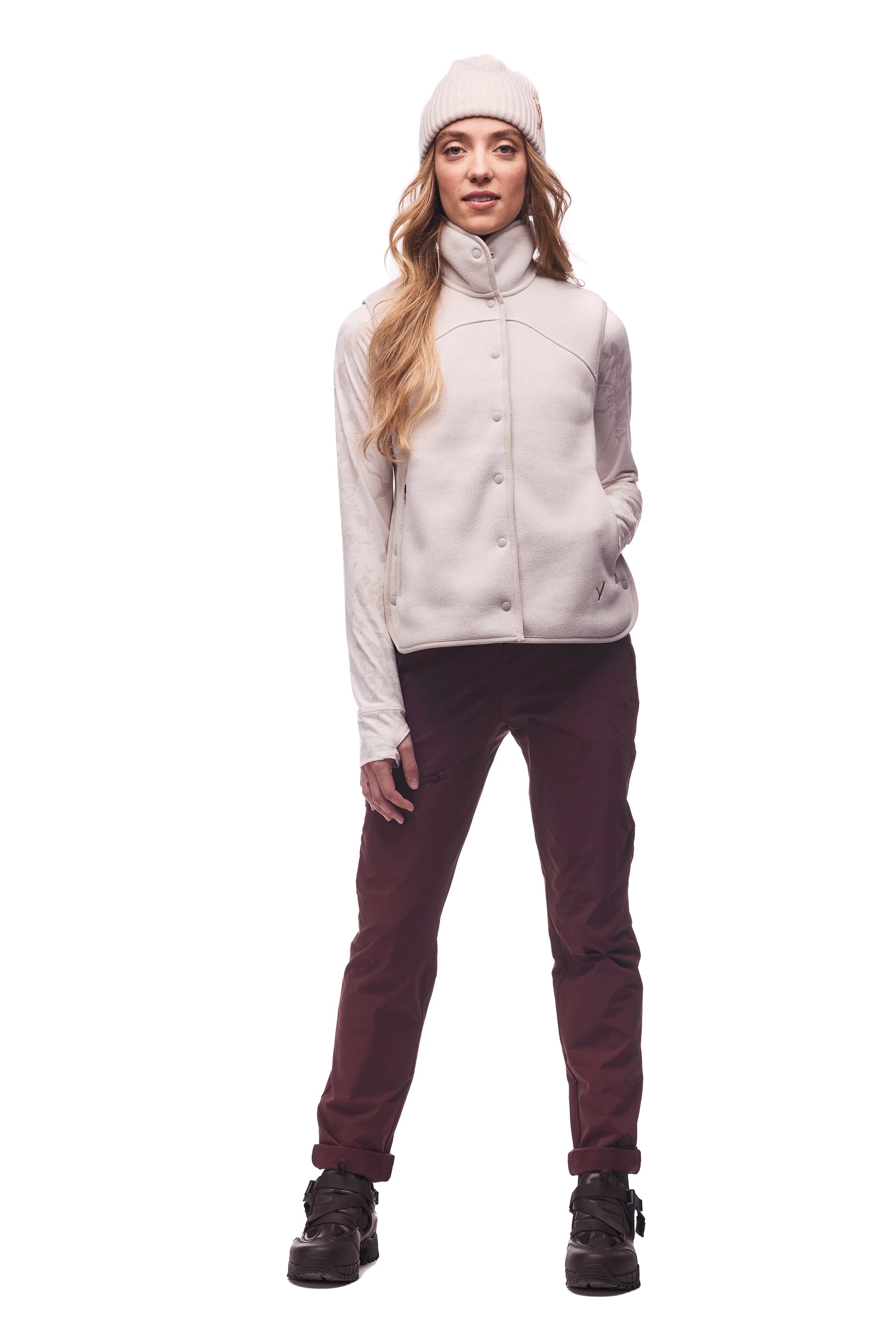 Sleeveless Polartec® Thermal Pro® turtleneck jacket with snap buttons on the front and sides. Secure zippered pockets.