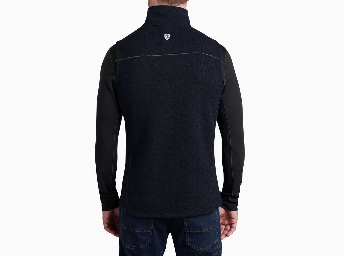The KÜHL INTERCEPTR Men's Vest features high-quality technical fabrics for superior warmth, comfort, and durability. Our exclusive ALFPACA GOLD™ performance fleece provides superior softness, while the KASHMIRA™ side panels reduce bulk and increase breathability. Although perfect as a cold weather layer, this versatile vest has more than enough style to stand alone.