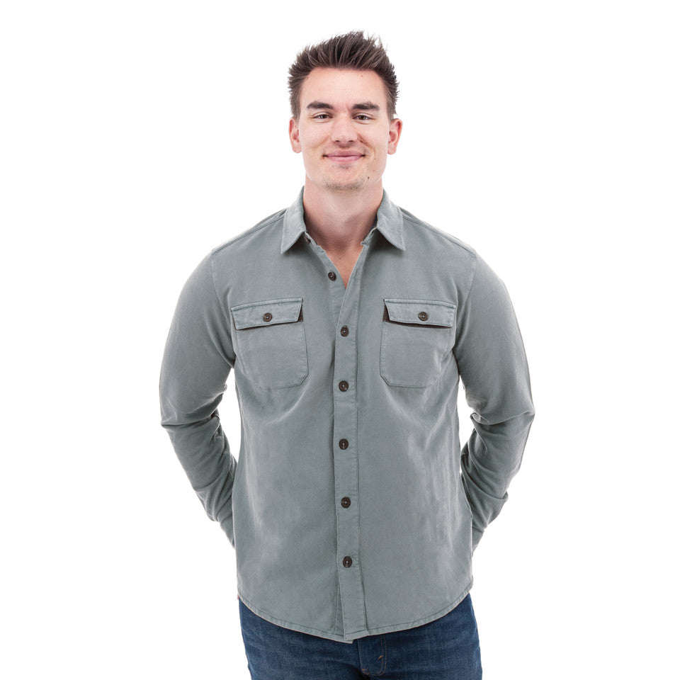 The Sprague Organic Overshirt is loved by customers because it feels like loungewear but looks like a polished button-front shirt. You'll have everyone fooled! The fabric makes this shirt special, made from 100% organic cotton into a terry knit. You will enjoy soft loops against the skin keeping you soft and warm while a smooth surface makes up the outside. You'll feel like you're wearing a sweatshirt, but the polished outer (complete with brown horn buttons) won't give you away. This fabric is also easy to maintain, as it was garment-dyed, ensuring extra softness, the least amount of shrinkage, and rich hues. Contrast chambray details bring cohesion to the look, coordinating the two chest pockets, collar, and cuffs.